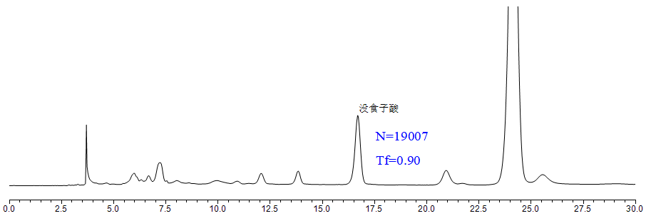 本法按2020版中国药典一部进行检测,使用JADE-PAK®ODS-AQ和JADE-PAK®KP-C18色谱柱测试广枣中没食子酸的含量测定,对照品溶液和供试品溶液的没食子酸目标峰塔板数均大于3000,增加了溶剂效应抑制管,得到理想峰形,符合标准要求。